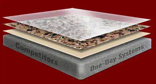 Efflorescence or Moisture Vapor Transmission: GarageFloorCoating.com mitigates for moisture on all concrete substrates to allow for proper penetration and adhesion regardless of moisture levels. Full chip garage installations such as (Ultra, Bagari, Earth Effects, Vintage and The Artisan Collection), any delamination due to moisture-related issues ARE covered under this warranty (unlike “1-day polyurea-polyaspartic” direct-to-concrete coating systems).