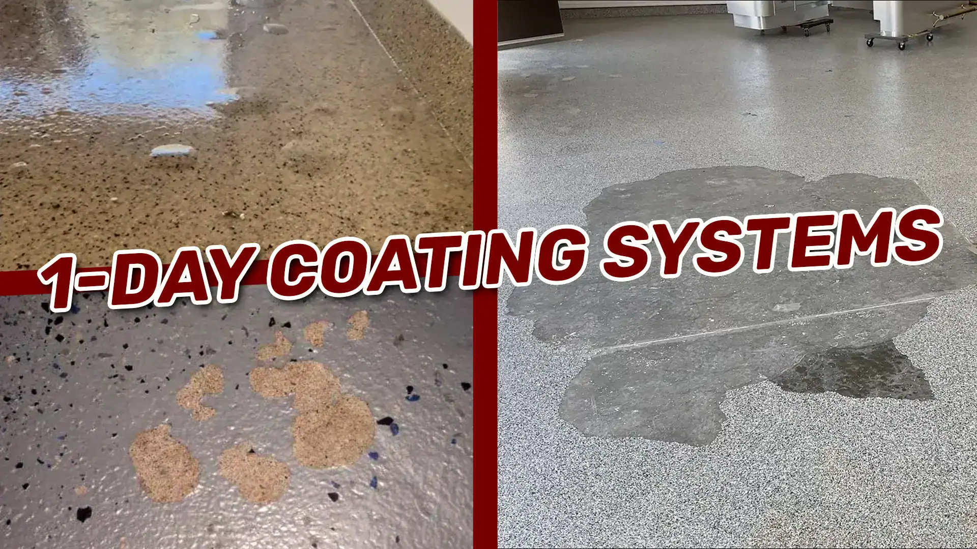 The primary appeal of 1-day installations is speed. Contractors can complete the job quickly using thin polyurea or polyaspartic coatings applied directly to the slab.